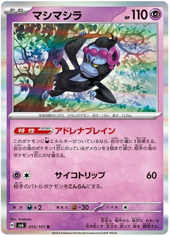 title Munkidori original title マシマシラ card game Pokemon Card Game version [SV6] Mask of Change original version [SV6] マスク・オブ・チェンジ card number 055/101 rarity Rare Illustrator kodama