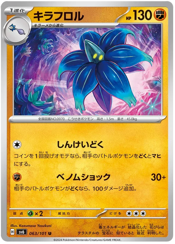 title Glimmora original title キラフロル card game Pokemon Card Game version [SV6] Mask of Change original version [SV6] マスク・オブ・チェンジ card number 063/101 rarity Uncommon Illustrator Kazumasa Yasukuni