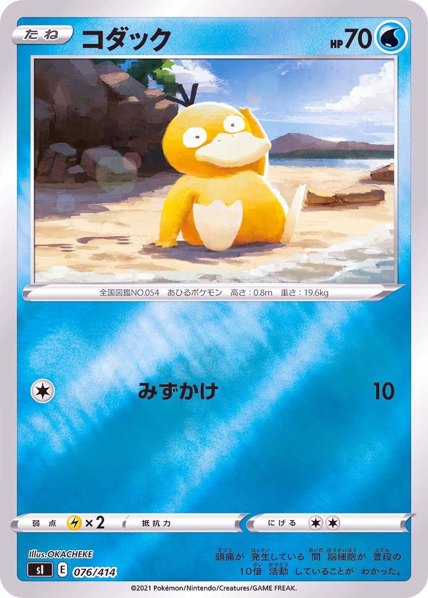 title Psyduck original title コダック card game Pokemon Card Game version [SI] Start Deck 100 original version [SI] スタートデッキ100 card number 076/414 spec Foil (Mirror card) Illustrator OKACHEKE