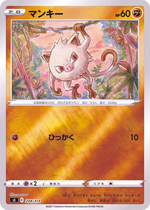 title Mankey original title マンキー card game Pokemon Card Game version [SI] Start Deck 100 original version [SI] スタートデッキ100 card number 208/414 spec Foil (Mirror card) Illustrator sowsow